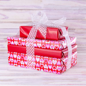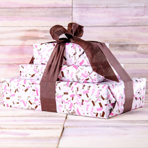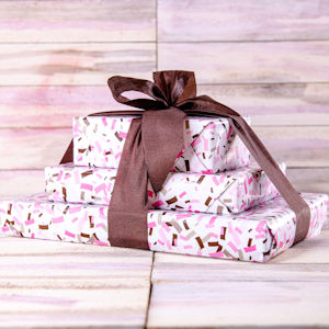 The tower is elegantly wrapped and tied, making it a beautiful gift presentation.
