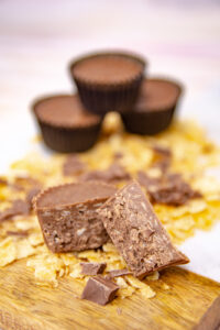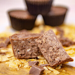 A milk chocolate crab chip cluster combines smooth milk chocolate with Utz’s crunchy crab seasoned chips. The salty spice flavor of the crab chips pairs well with the sweetness of the chocolate. This snack offers a delightful blend of sweet and spicy flavors.
