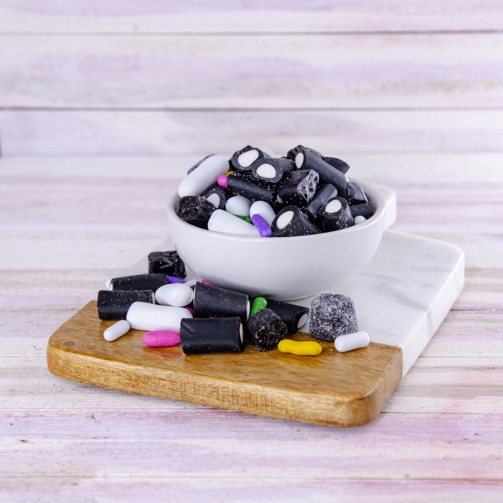 An old-fashioned American favorite, Licorice All Kinds is a colorful combination of licorice nonpareils, cream rock, licorice pastels, jelly beans, and dots.
