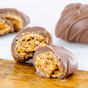 This treat combines milk chocolate and crispy layers of peanut butter for a rich flavor. It has a crunchy texture and includes toasted coconut, which adds a unique touch. It’s a delicious candy that satisfies your sweet cravings!